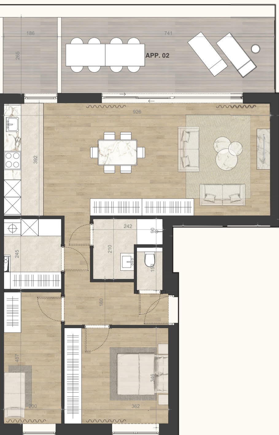 Nieuwbouw appartement met 2 kamers en groot terras